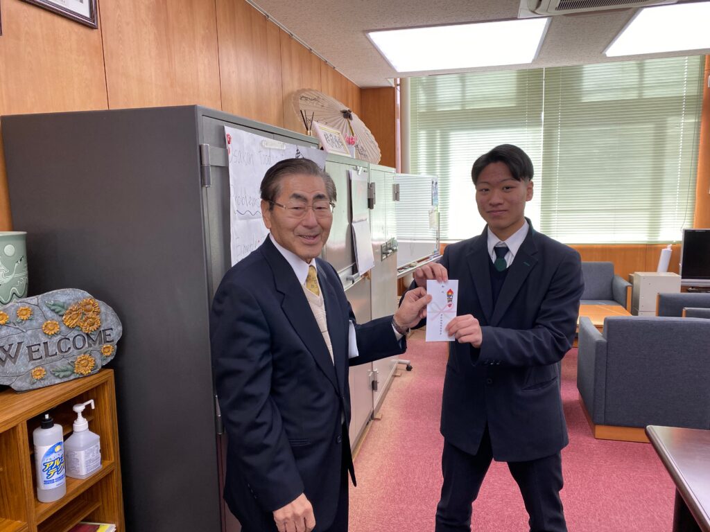 拳法部の相良さんが第29回全国高等学校拳法大会に出場されますので、お祝いと激励をしました。